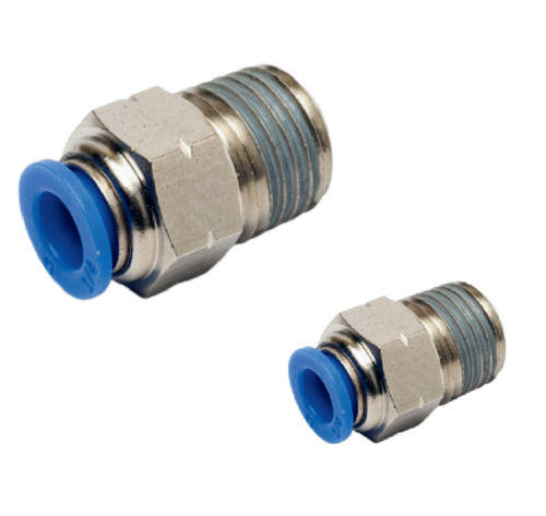 Conexão linear com rosca macho: Permite ligação direta com componentes fêmea, garantindo firmeza e vedação.