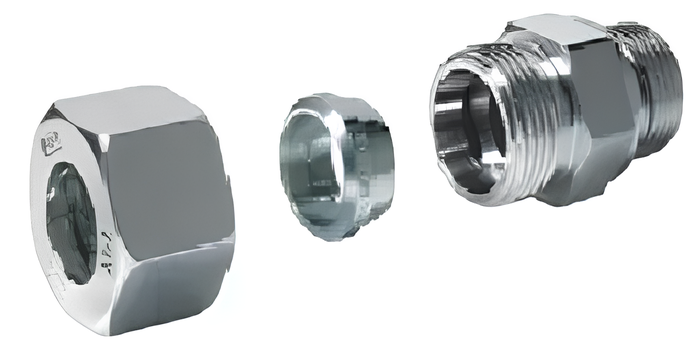 Seguindo as normas internacionais ISO 8434-1 / DIN 2353, essas conexões proporcionam uma montagem rápida e confiável, eliminando a necessidade de soldagem e oferecendo maior simplicidade na instalação, mesmo em sistemas óleo-dinâmicos complexos. O design com cone de 24° permite que a anilha seja pressionada contra o tubo, criando ranhuras que asseguram estanqueidade total e resistência ao desaperto, mesmo em condições severas de operação.
